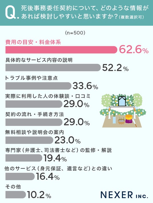 続いて、死後事務委任契約について、どのような情報があれば検討しやすいと思うかを聞いてみました。