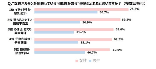 落ち込みや情緒の安定、のぼせやほてり、異常発汗の症状を知っている男性はわずか約35%! 男女の認識の差が大きく表れる結果に