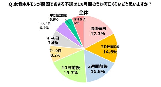 →女性では1ヵ月のうち「ほぼ毎日~2週間前後」不調を感じているという人が半数以上