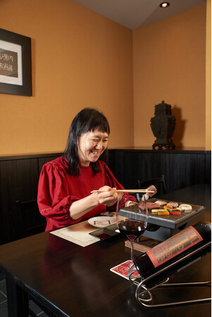作家の角田光代さんは但馬牛の最高峰と呼び名も高い「但馬玄の石焼き」を堪能。