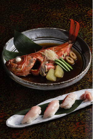 熱川温泉(静岡)で堪能したいのは金目鯛。姿煮や寿司などでいただく。