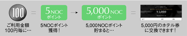 ※加算条件を満たす場合、本キャンペーンのポイントとは別途「NOCポイントプログラム」のポイント、および「ニューオータニクラブ VISAカード」のVポイントもご利用金額に応じて加算されます。これらの各ポイントの加算時期は、各ポイントに係る規約に定める加算時期に従うものといたします。