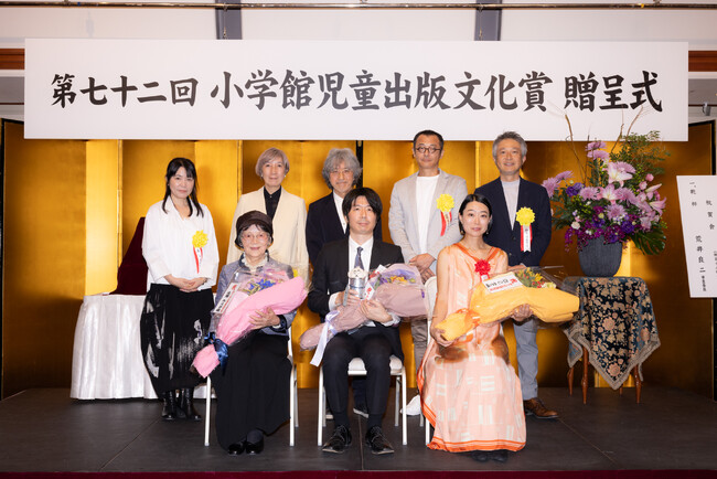 「小学館児童出版文化賞」(主催/小学館、日本児童教育振興財団)は、毎年度、児童出版文化の向上に貢献すると認められる幼年ならびに少年少女に奨めたい優れた作品および作家を選定し顕彰しています。この度、2023年度の受賞作が三作品に決定し、11月9日(木) 都内にて贈賞式が行われ、正賞としてブロンズ像「わかば」(笹戸千津子作)、副賞として賞金100万円が授与されました。