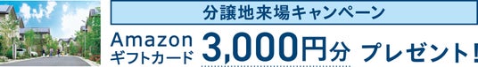 大和ハウスの公式WEBサイトから「分譲地」にご予約の上、ご来場いただいた方に「Amazonギフトカード3,000円分」をプレゼントします。