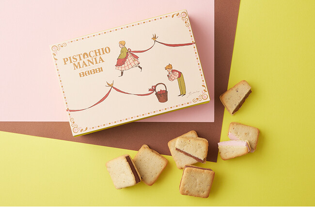 バターの香り豊かなラングドシャ生地に、細かく刻んだピスタチオとイタリア産ピスタチオペーストをあわせて焼きあげ、肉厚なオリジナルチョコレートをサンドしました。 ミルクチョコレートをサンドした「オリジナル」とあまおう苺チョコレートをサンドした新作「あまおう苺」のアソートです。
