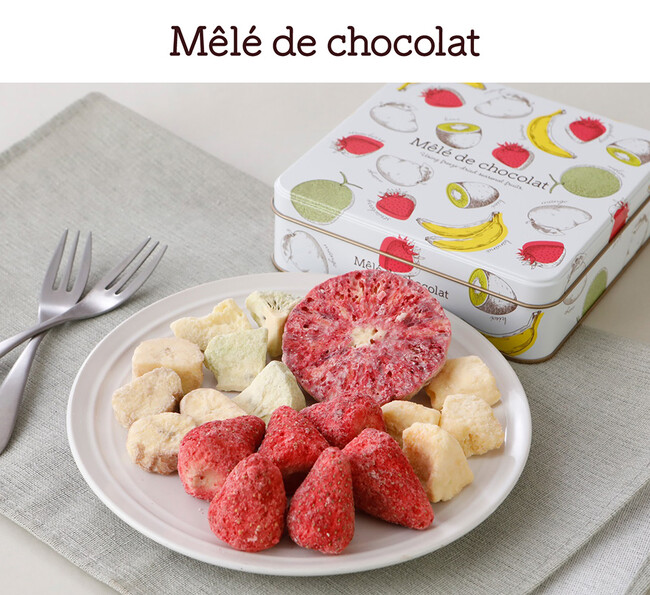 フリーズドライしたフルーツにホワイトチョコを浸み込ませたホロッサクッとした新食感のチョコレートの、5種類のフルーツが楽しめる限定アソート。