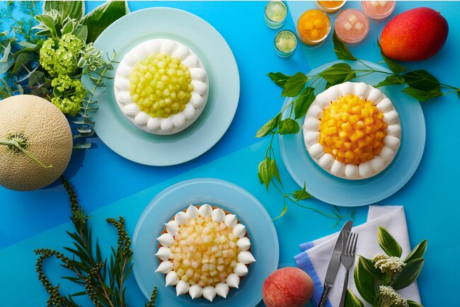 夏の三ツ星フルーツ、マンゴー・メロン・ピーチがそろい踏み!贅沢ショートケーキの食べ比べも。