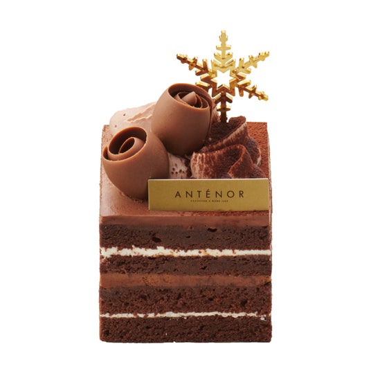 クリスマスの主役にふさわしい、鮮やかな深紅のケーキ。フランボワーズ香るジェノワーズショコラに、シャンティーショコラとフランボワーズクリームをサンドしました。濃厚なショコラと甘酸っぱいフランボワーズの、甘美な味わいをお愉しみいただけます。