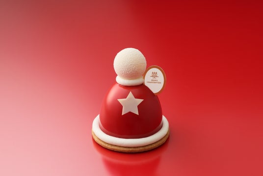 2025年ニューオープンの話題のショップのクリスマスケーキ。サンタさんの帽子型が愛らしいチョコレートムース。