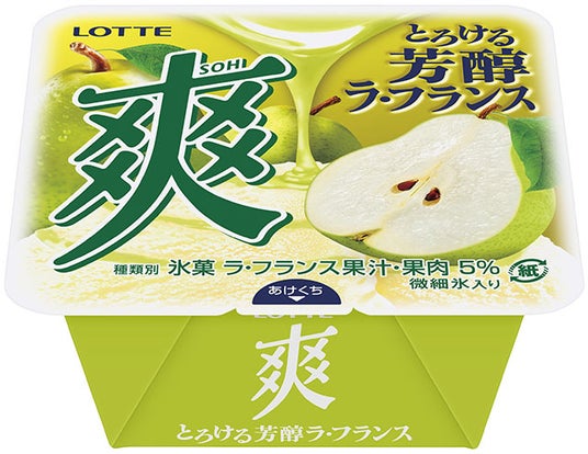 株式会社ロッテは11月4日(月)に、微細氷入りでくちどけの良い食感とさっぱりとした後味が楽しめる 「爽」ブランドから、『爽 とろける芳醇ラ・フランス』を発売いたします。「梨」を使用したフレーバーは過去何度も発売し、そのたびに好評を得てきました。今秋の新作は旬を迎えるラ・フランスを使用した芳醇な香りと食感が特長です。ラ・フランスの特長であるとろける食感と味わいをご堪能ください!
