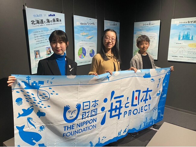 (一社)海と日本プロジェクトin東京が主催する「海洋インフォグラフィックコンテスト」などを通じて、海の魅力や課題を伝える活動を積極的に行う中学生3名が「シシャモ」をテーマに“北海道の海の今と未来”を伝える展示をAOAO SAPPOROと一緒に企画・制作しました。