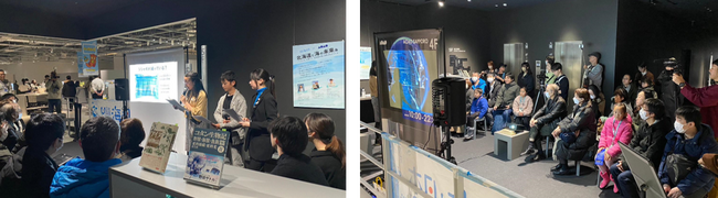 社 青々とコラボし、2023年夏にオープンした都市型水族館「AOAO SAPPORO(館長:山内 將生)」において、2024年1月6日(土)11時~ 2024年1月15日(月)の期間限定で「北海道と海の未来」展を開催しました。海の魅力や課題を伝える活動を積極的に行う、海が大好きな中学生3名が、“北海道の海の今と未来”を伝える展示をAOAO SAPPOROと一緒に企画・制作し、展示初日には中学生たちによるプレゼン会も開催されました。