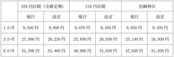 これを受けまして、下記のとおり、通勤定期券及び高齢者専用定期券の運賃を改定します。何卒ご理解賜り、今後ともご利用いただきますよう、お願い申し上げます。