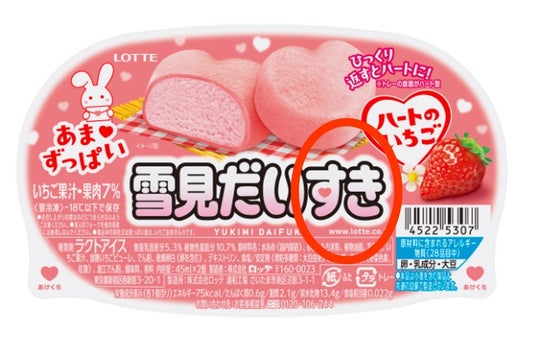 - あまずっぱい味わいのいちごアイスと弾むぷにぷに食感のおもちがマッチしたまぁるいハートの形の雪見だいふくです。(容器から取り出し、裏返したときにまぁるいハートの形になっています)