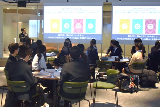 日比谷高校の生徒22名が参加。カードゲームを通じて、社会と将来の進路を考える