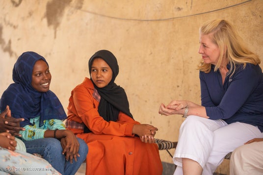 紛争や気候災害のような混乱の後、中途退学する可能性が高い一方、学校に戻る可能性が低いという、女の子にとっての特別な課題に注目していただきたいと思います。ひとたび結婚や仕事、その他の形態の搾取に取られてしまうと、女の子を再び学校に通わせることは、不可能ではないにせよ、非常に困難です。ユニセフは、こうした女の子たち、そしてすべての子どものために、教育を受ける権利を実現させることに全力を尽くします。女の子たちが置き去りにされるようなことがあってはなりません。
