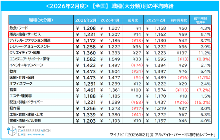 『2026年2月度 アルバイト・パート平均時給レポート』