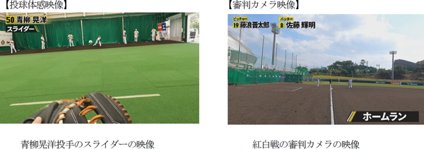 また、阪神タイガースの紅白戦の様子を審判のマスクに設置した小型カメラで撮影した「審判カメラ映像」も追加します。佐藤輝明選手の本塁打など、プロの試合を審判目線で存分にお楽しみいただける新映像を是非ご覧ください。