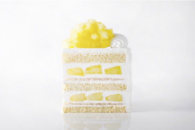 静岡県産マスクメロンを1ピースに約3分の1個も贅沢に使用。玄米を食べて育った鶏による「玄米卵」を採用したスポンジ生地和三盆糖やバニラビーンズを加えた九州大牟田産の生クリームが、国産メロンの甘さを最大限に引き立たせます。さらにみずみずしいライチの層をプラスし、すっきりとした後味を演出。生地・クリーム・フルーツが三位一体になった最上級のショートケーキです。