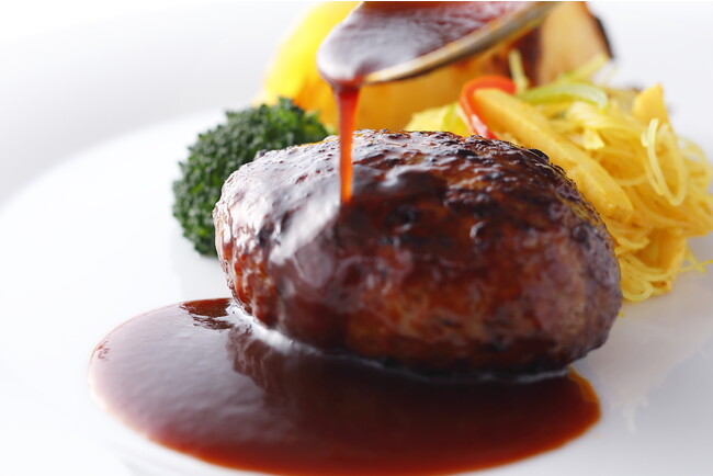 また、三國シェフイチオシの「仔羊のハンバーグステーキ 黒蜜バルサミコの照り焼きソース」は、肉感たっぷりの仔羊の粗挽きハンバーグに、黒蜜とバルサミコ酢で作った照り焼きソースを合わせることで、さわやかな酸味が食欲を増進させてくれる逸品です。いずれも、アラカルトやプリフィクスコース(海老レッドカレーとビーフブラックハヤシは追加料金)、週末のビュッフェでもお楽しみいただけます。