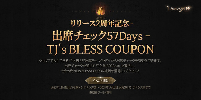 ■リネージュW史上最大級の枚数!「TJ’s BLESS COUPON」を開催