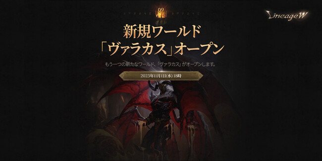 2周年の節目を記念して、これからリネージュWをはじめるプレイヤーの皆様が円滑なゲームプレイを行えるよう、11月1日(水) 18時に新規ワールド「ヴァラカス」をオープンします。