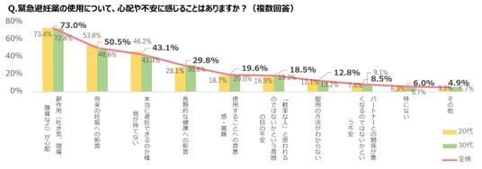 ●緊急避妊薬の使用に関する不安のトップは「副作用(吐き気、頭痛、腹痛など)が心配」で7割超
