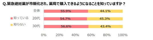 ●緊急避妊薬の市販化、薬局で購入できるようになることの認知率は20代・30代とも5割超