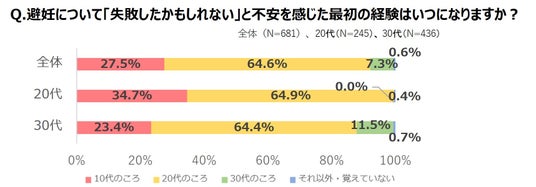 ●7割以上の女性が過去に「避妊不安を感じた経験」あり。その最初の経験が10代のときだったという人が27.5%