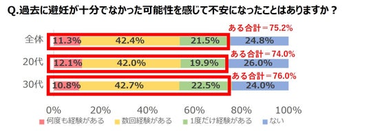 ●7割以上の女性が過去に「避妊不安を感じた経験」あり