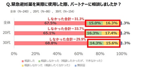 ●緊急避妊薬を使用した人の3割超が「事前にパートナーに相談しなかった」