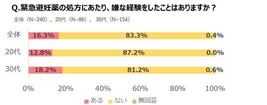 ●緊急避妊薬を使用した際、その処方にあたって嫌な経験をしたことがある人が16.3%