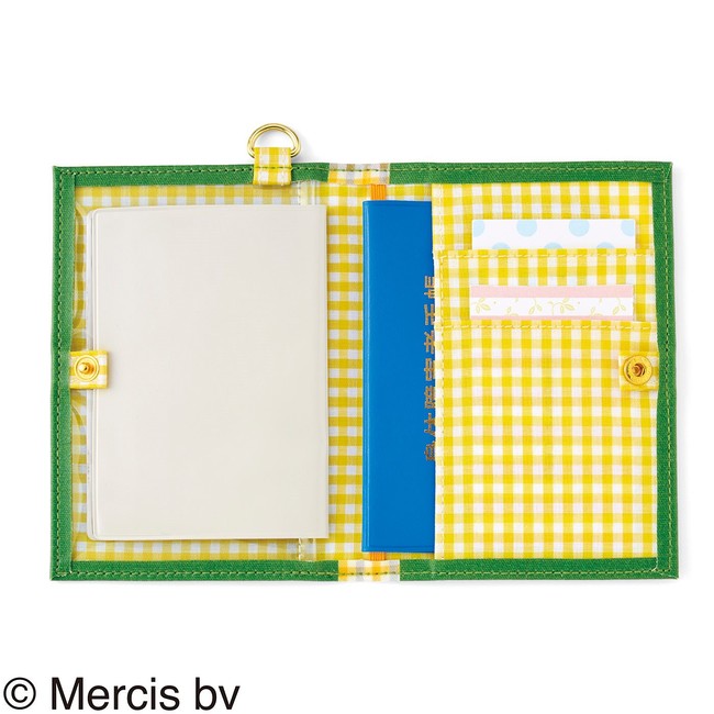 手帳は2冊収納できて、ゴムで挟み込めます。内側は、裏コーティングしたギンガムチェックのコットン素材です。カードポケットがふたつついています。(左から〈ロッテ〉〈ダーン&ミッフィー〉)