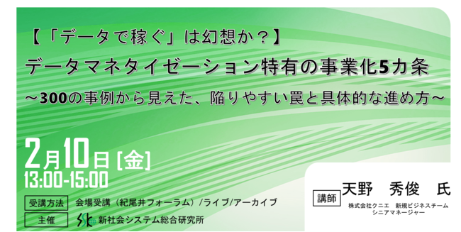 ビジネスセミナーを企画開催する新社会システム総合研究所(SSK)は、下記セミナーを開催します。