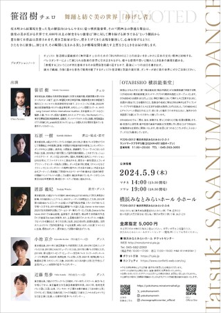 CCJ(一般社団法人コレオグラフィックセンター)、コンサートイマジン、DST-NEXT主催、笹沼 樹 チェロ 舞踊と紡ぐ美の世界『捧げし者』が2024年5月9日(木)に横浜みなとみらいホール小ホール(神奈川県横浜市西区みなとみらい2丁目3−6)にて開催されます。