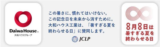大和ハウス工業株式会社(本社:大阪市、社長:大友浩嗣)は、日本気候リーダーズ・パートナーシップ(JCLP)が8月8日を気候変動に関する記念日として制定した「暑すぎる夏を終わらせる日」の趣旨に賛同します。