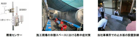 気候変動の適応では、気象災害による被害を軽減するため、熱中症対策や水害対策などに取り組んでいます。熱中症対策では、気温が上昇する中でも従業員が安全・安心に働ける環境を整備しています。WBGT値(暑さ指数)を測定する環境センサー「WEATHERY(ウェザリー)」をメーカーと共同開発し、施工現場に導入しています。また、施工現場や屋外店舗などでも快適に働けるよう、ファン付き作業服といった熱中症対策品の購入補助も行っています。水害対策では、豪雨・洪水などが発生したときの浸水リスクの低減を図っています。自社施設において、ハザードマップの確認、土嚢・止水板の設置、災害時用の水や食料などの備蓄を行い、災害発生時の行動マニュアルの策定や、対応訓練の実施といったBCP(事業継続計画)対策を進めています。また、当社が開発する物流施設では、建設前に浸水リスク評価を行い、リスクが高いと判断されたときに敷地の嵩上げなどを実施しています。さらに、当社は地域社会への貢献のため自治体と防災協定を締結しており、全国18の自治体(2025年3月末時点)では災害発生時に物流施設の共用部を一時避難所として提供しています。