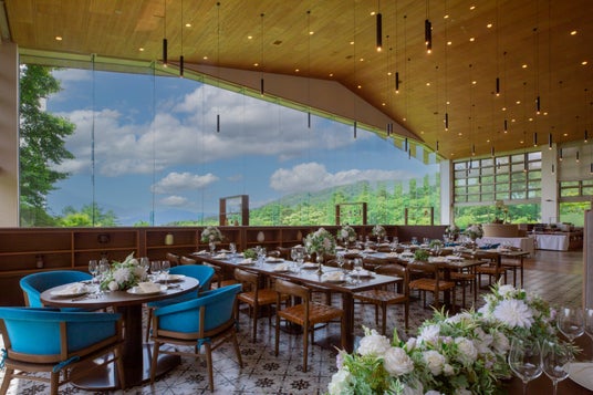 本商品は、高さ9mのパノラマウィンドウから浅間山に隠れたハートを真正面に望める軽井沢町内でも特に眺望の良い軽井沢 浅間プリンスホテルのレストラン「ダイニング ブルーム」にて、結婚のお祝いパーティや両家の顔合わせをはじめ、成人式や七五三などのお祝いシーンや全国的にも平年より気温が高くなると予想されている今夏の納涼会や暑気払いにもご利用いただけるプランです。開放的な店内は最大40名さままで対応可能。提供されるコース料理には軽井沢産のアメーラトマトや信州サーモンなど、信州の食材を取り入れ、料理長の青木佑真が得意とするフランス料理の技法でモダンに、愛と情熱をイメージし一皿一皿丁寧に仕上げています。
