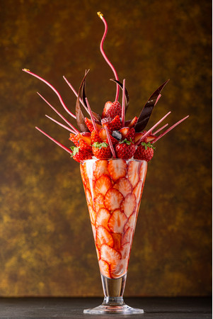 「伊豆産紅ほっぺのプレミアムいちごパフェ」は、サンゴをイメージしたアートなスペシャルパフェです。