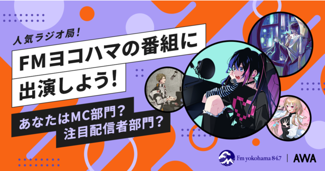 エントリーが開始されたイベントは、FMヨコハマのAWAコラボ番組『ラウンジスターレディオ supported by AWA』にサブMC、または注目配信者として自分をPRできるコーナーに出演できる権利を贈呈する企画の第六弾となります。本企画は、トークをメインに活動する配信者だけではなく、歌い手やVsingerなどの歌をメインに活動している配信者の方にも、出演していただけるようにMC枠と、注目配信者紹介コーナー枠の2部門をご用意いたしました。