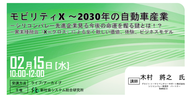 ビジネスセミナーを企画開催する新社会システム総合研究所(SSK)は、下記セミナーを開催します。
