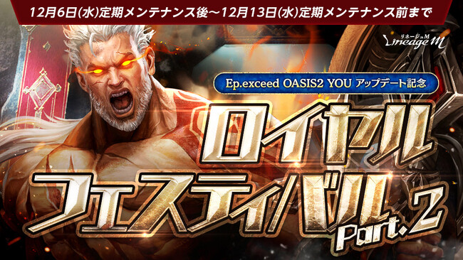 PCオンラインRPG「リネージュ」のモバイル版タイトル『Lineage M(以下、リネージュM)』のサービス、運営をしているエヌ・シー・ジャパン株式会社(東京都港区、代表取締役:金 澤憲(キム テクホン) 以下、エヌシージャパン)は、2023年12月6日(水)に、イベント「傲慢と信念の征服者」、「ロイヤルフェスティバルPart2」の開催、新装備「輝く成長のシャツ」、「輝く黒兎のシャツ」の登場をお知らせします。