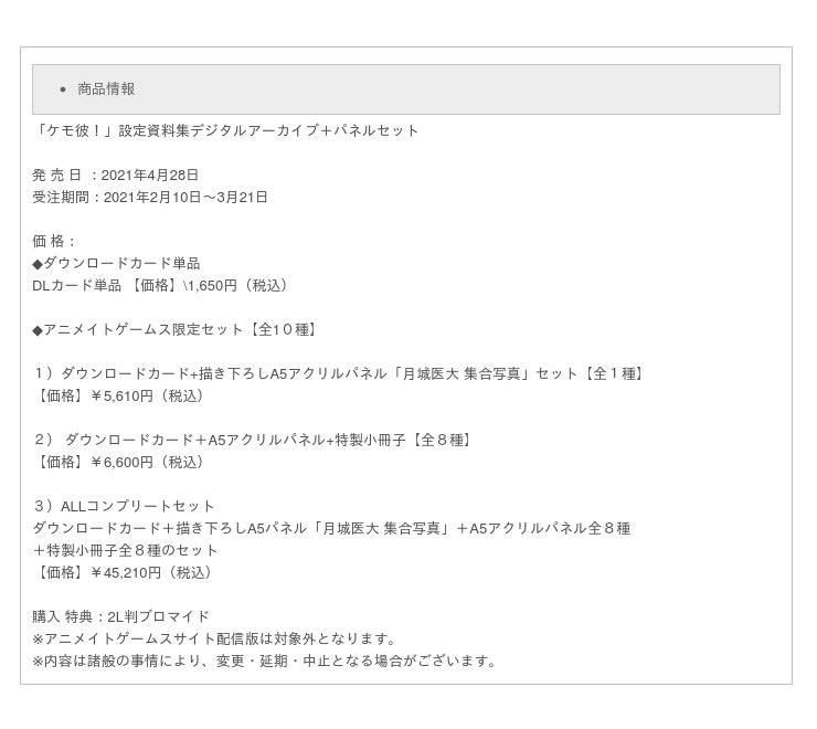 ファン待望の「ケモ彼!」設定資料集デジタルアーカイブが、アニメイトゲームス完全受注生産にて2021年4月28日に販売決定!