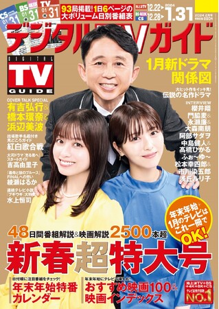 そして、今号では、年末年始から1月にかけて放送される大型&恒例の注目番組を大ボリュームで掲載。その数は、番組解説と映画解説あわせて2500本超! これで年末年始+1月の視聴計画はバッチリです。さらに、2024年の冬ドラマ特集として、人物関係図のほか、「XXX占拠」の櫻井翔、「厨房のありす」の門脇麦&永瀬廉&大森南朋、「不適切にもほどがある!」の阿部サダヲ、「リビングの松永さん」の中島健人&高橋ひかるのインタビューも掲載しています。
