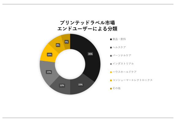 プリンテッドラベル市場は、プリントプロセス別、エンドユーザー別、原材料別、ラベルのフォーマットによって分類できます。これらのカテゴリは、さらに次のように分類されます: -