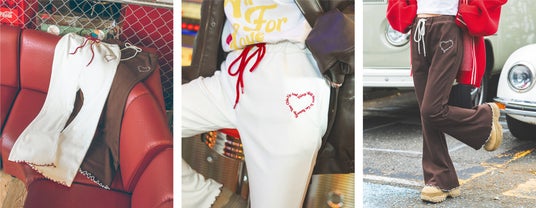 トレンド感のあるシルエットに、ポケットにはハートの刺繍でアクセントを加えたデニム。