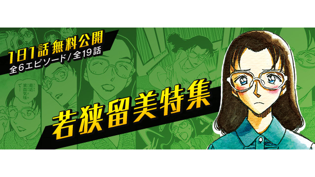 本特集では、「若狭留美」が登場するエピソードをピックアップした特集を実施します。「名探偵コナン公式アプリ」内にて、全6エピソード19話を、1日1話無料でお読みいただけます。プレミアムクラブ会員の方は、公開された話は期間中いつでも無料購読できます。会員ではない方も期間中、第91巻の「新任教師の骸骨事件」と各エピソードの1話目は、公開後いつでも無料購読できます。