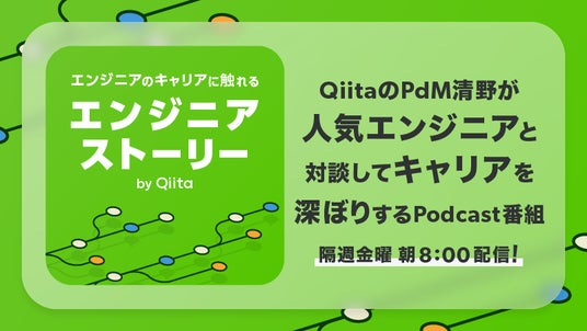 『エンジニアストーリー by Qiita』は、近年高まるエンジニア向けPodcastのニーズに応え、Podcast制作会社であるPitPa社と連携しながら、エンジニアのキャリア形成に有益な情報を発信してまいります。