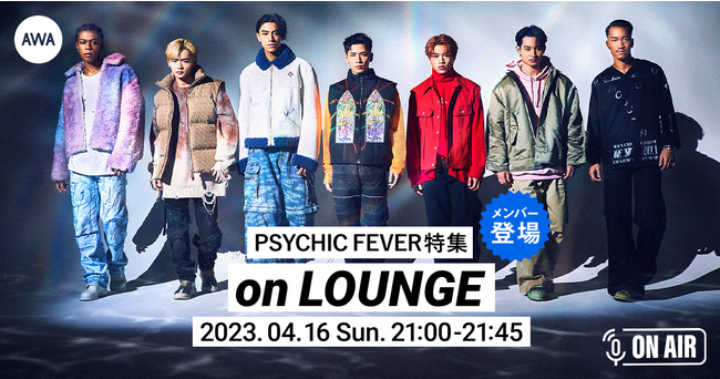 AWA株式会社(本社:東京都港区、代表取締役CEO:冨樫晃己)が運営する、サブスクリプション型(定額制)音楽ストリーミングサービス「AWA(アワ)」は、2023年4月16日(日) 21:00~21:45の45分間に渡り、オンライン空間「ラウンジ」で、PSYCHIC FEVERのメンバーが音声とチャットで登場するイベントを開催いたします。