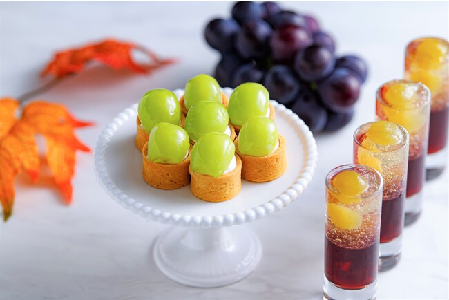 秋の高級フルーツとして知られるシャインマスカットやぶどうを使用したスイーツも登場します。 カスタードクリームを敷き詰めたタルトに生クリーム、 フレッシュなシャインマスカットをトッピングした『シャインマスカットタルト』は、 フルーツが美しく輝く“ジュエリースイーツ”として登場。 ほかにも、 『ぶどうジュレ』や『ぶどうパフェ』など、ぶどうのジューシーさが感じられるスイーツも満載です。